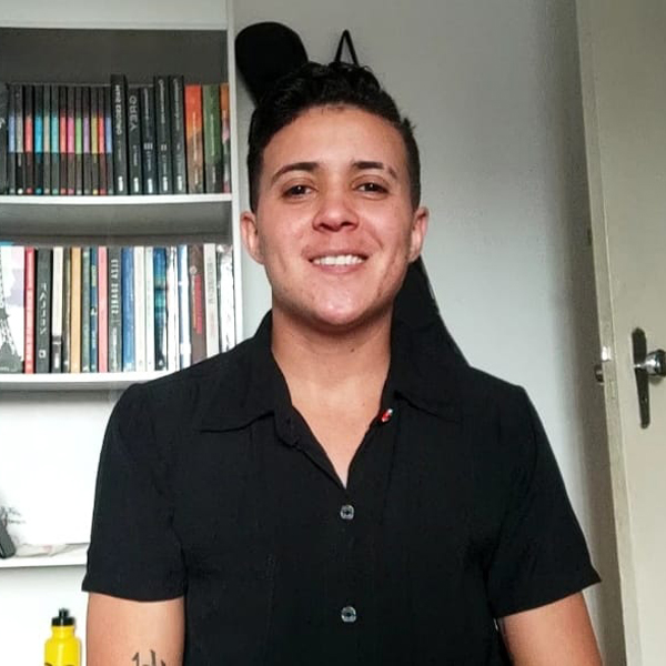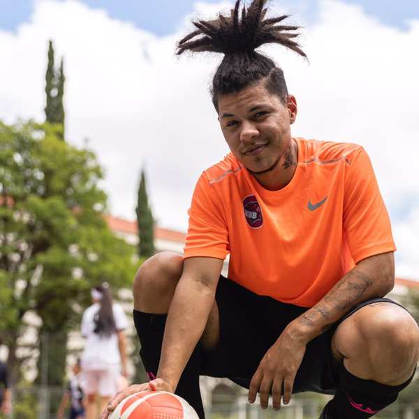 Trans não binário, faz parte do time Meninos Bons de Bola, licenciando em ciências sociais e pesquisador de questões de gênero e raça.