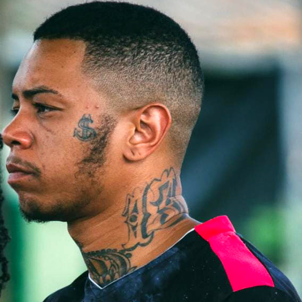 Homem trans, faz parte do time Meninos Bons de Bola. Barbeiro/empresário.